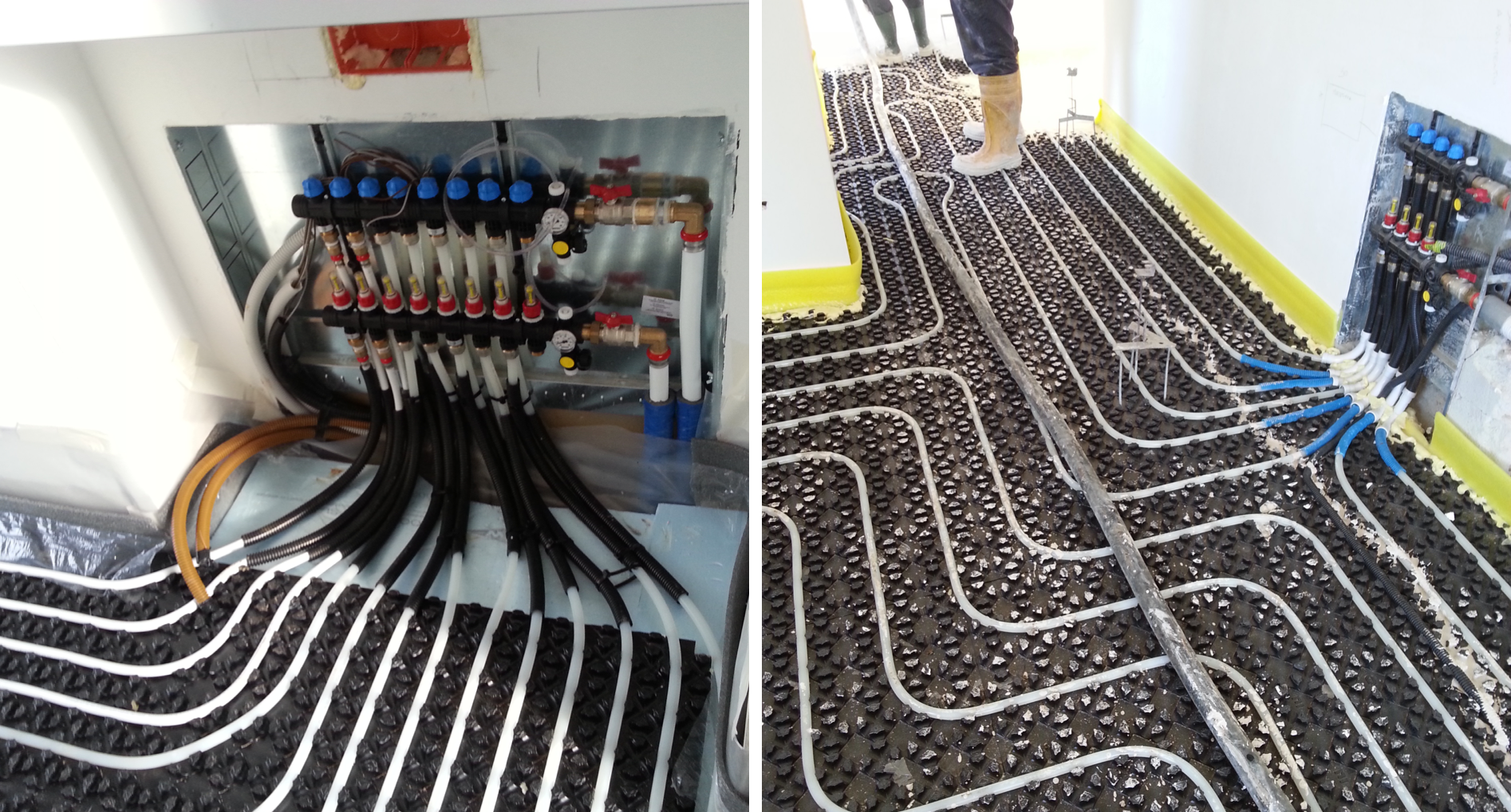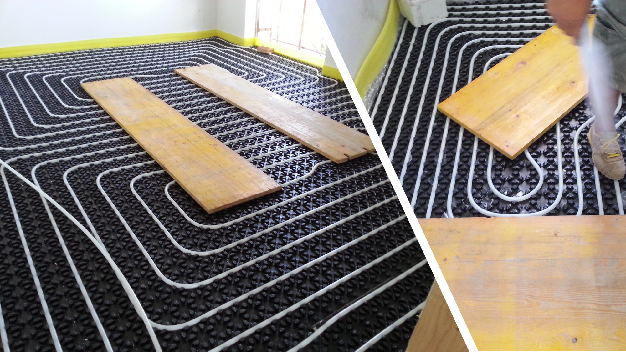 Solitamente, il pavimento radiante viene gettato sopra il massetto degli impianti (per capirci!).