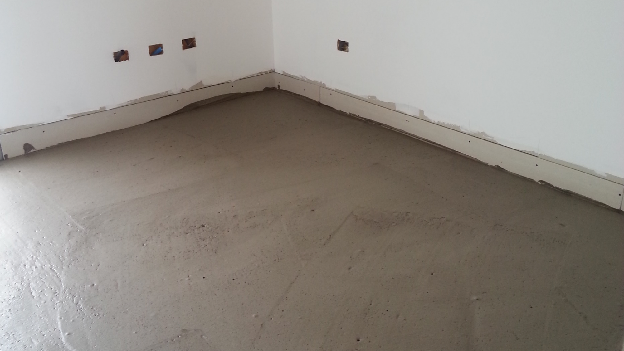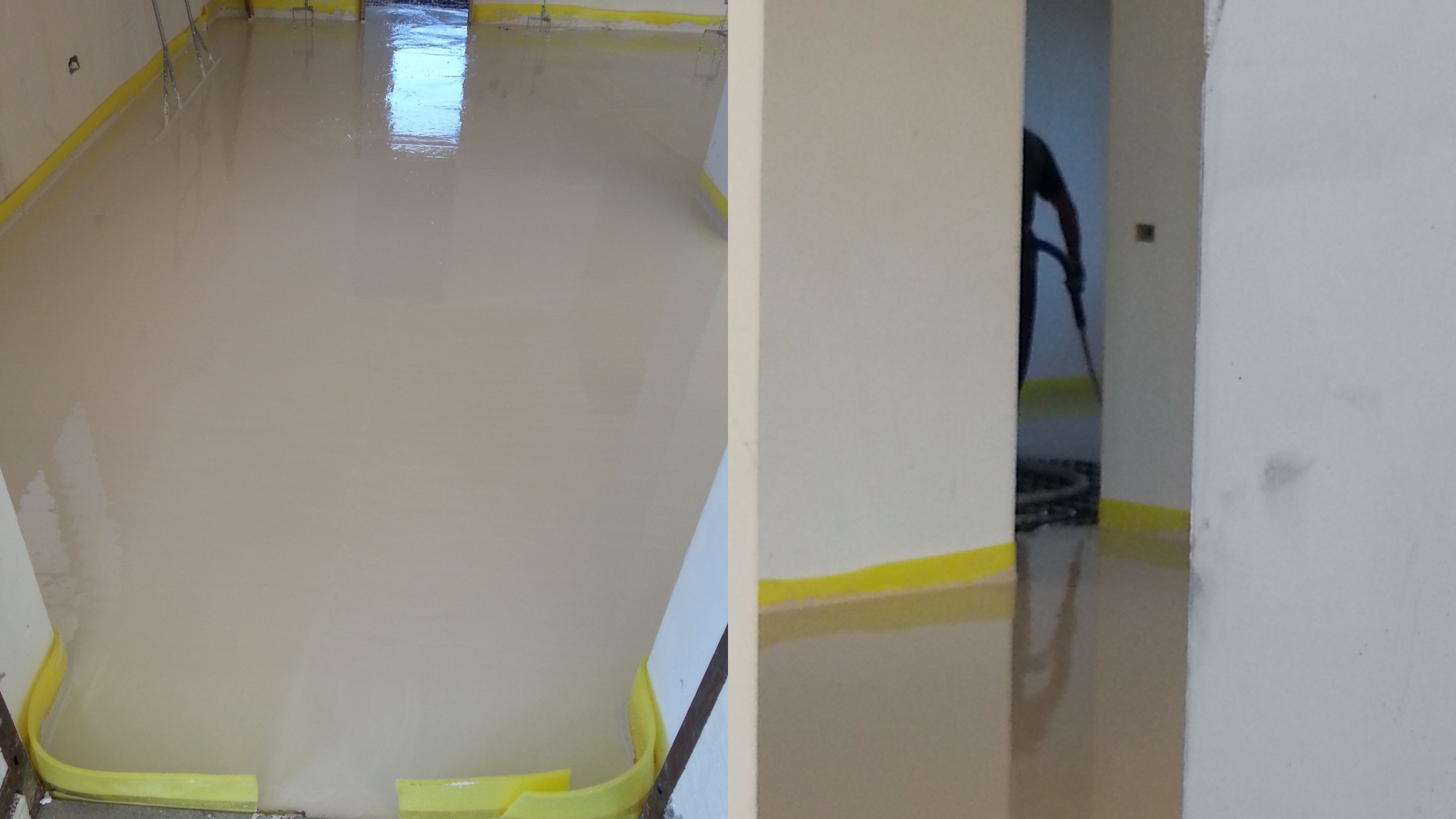 Il getto che vedi, però, è di un altro tipo; in quanto, stiamo gettando un massetto alleggerito, cioè, molto più liquido, in modo che si possa auto livellare.