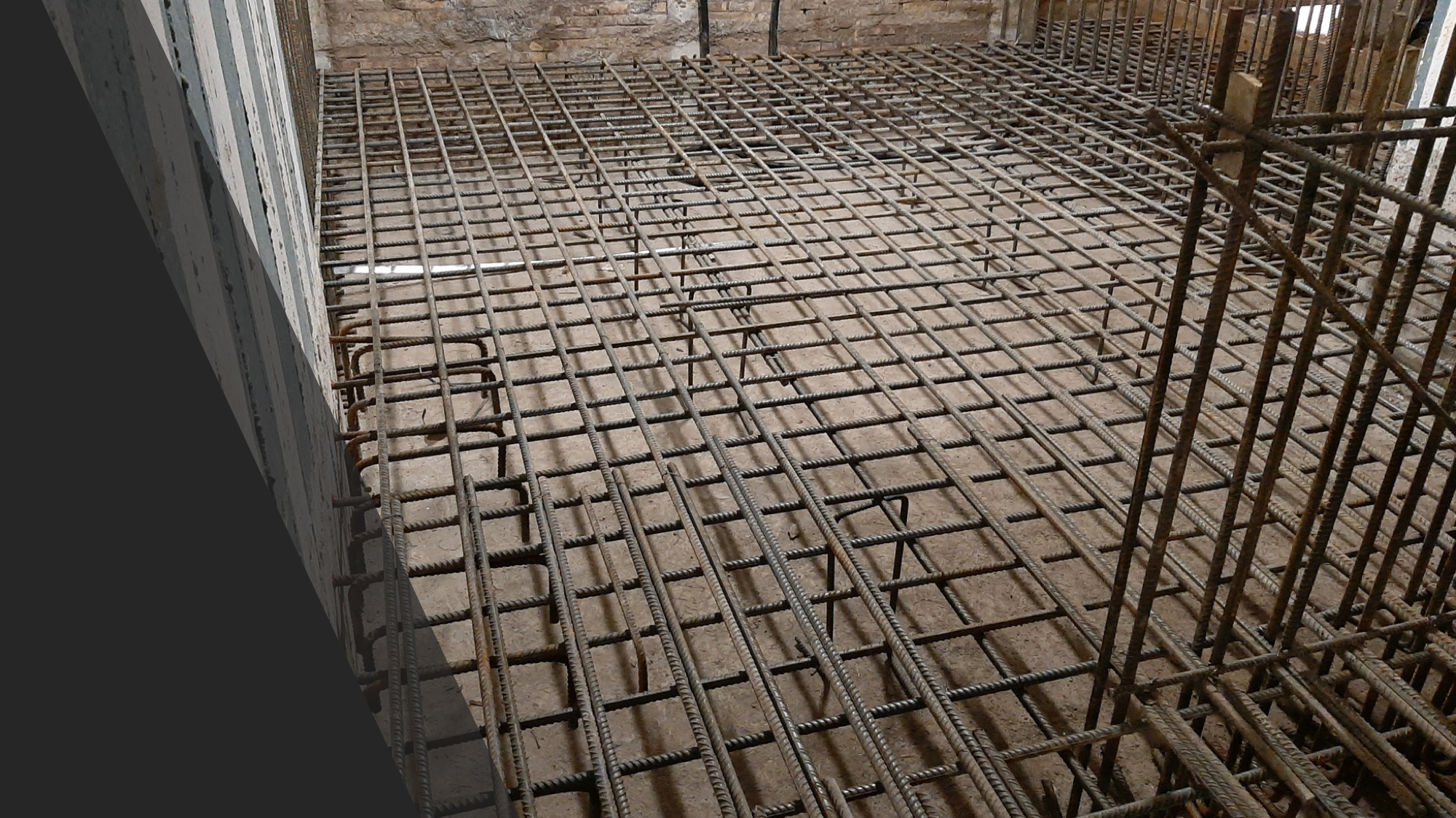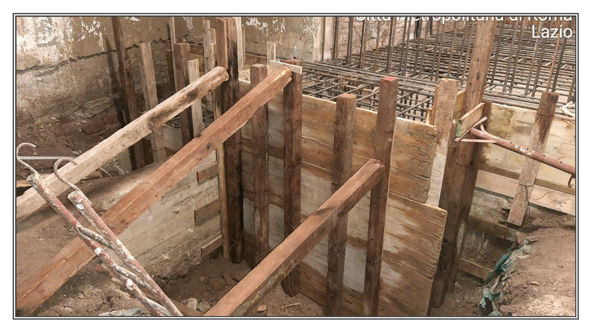 Adesso vedi tutta la parte superiore che è stata armata, e dove i ferri non arrivano si affiancano altri ferri a mo’ di prolungamento, e poi, viene preparato il cassero in legno, preparato in modo che sia facile staccarlo quando il calcestruzzo si è solidificato.