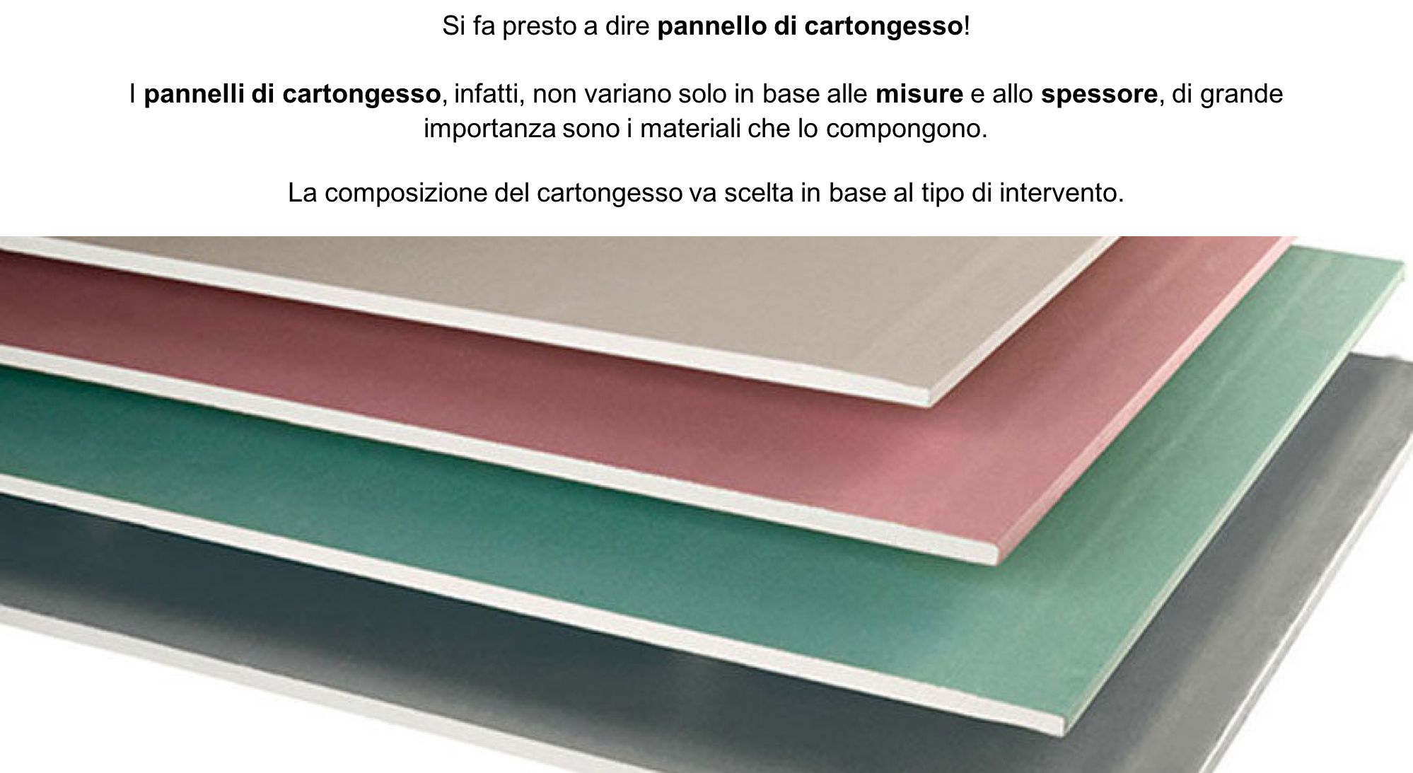 Si fa presto a dire pannello in cartongesso. Non variano solo in base alla misura; ma, cosa più importante, in base alla loro composizione, che va a braccetto con il relativo tipo di intervento.
