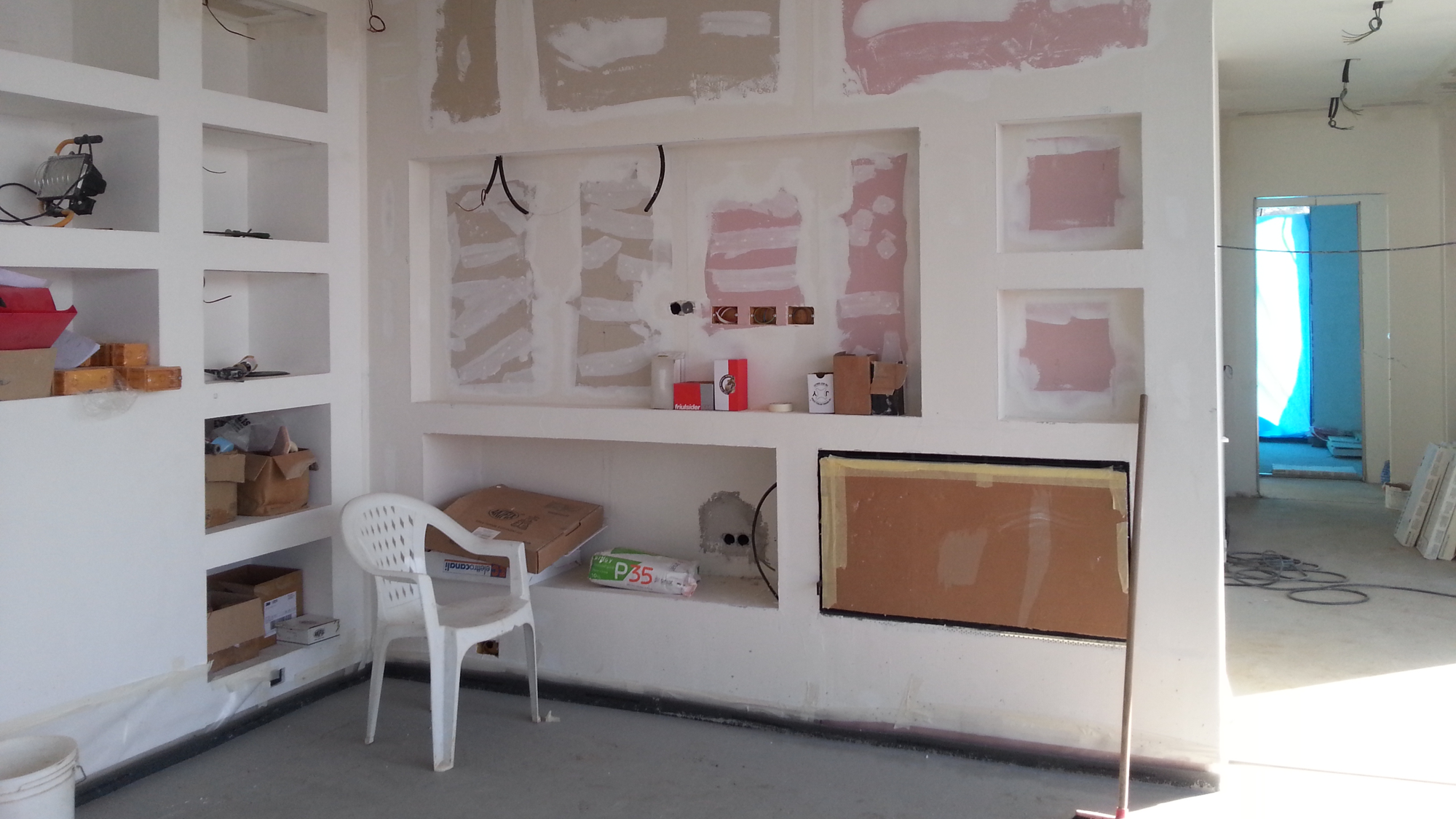 In cantiere, l’abbiamo usato in prossimità del camino, come vedi in foto. So che ti stai chiedendo come mai non fare tutto l’edificio con un cartongesso più performante, anziché alternarlo con il classico. I costi lievitano molto; per cui, non c’è motivo di far fare una spesa eccessiva al cliente, laddove non è necessario.