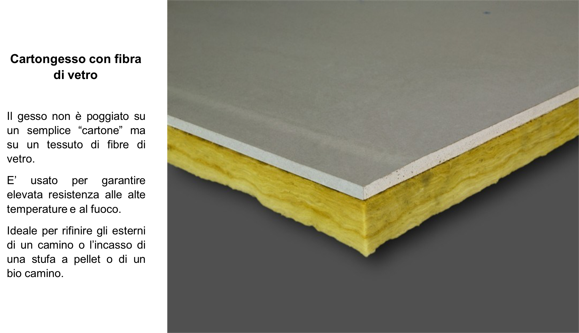 Ci sono i cartongessi accoppiati alla fibra di vetro. Attenzione a distinguere la lana di roccia dalla lana di vetro. Sono due cose diverse, avendo prestazioni di tenuta al calore.
