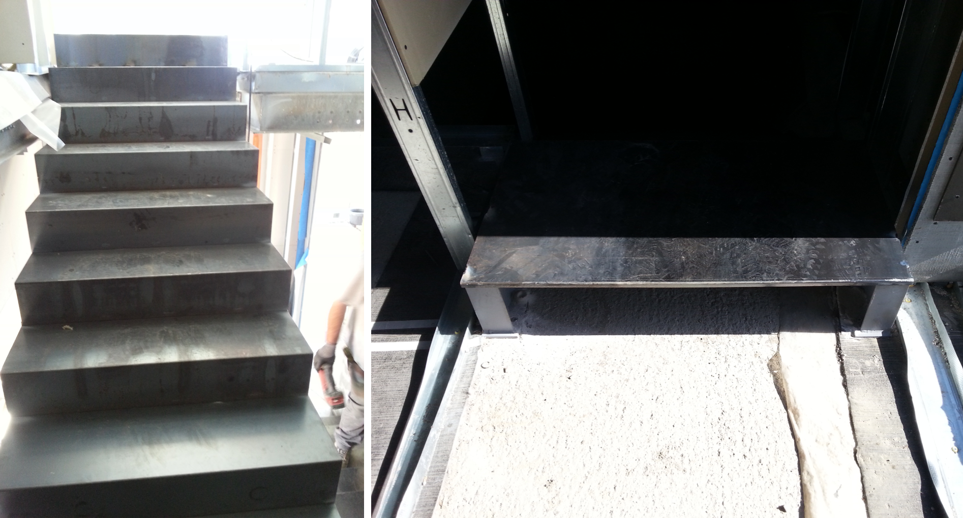 In quest’altra foto, vedi che anche il pianerottolo è stato realizzato in lamiera.